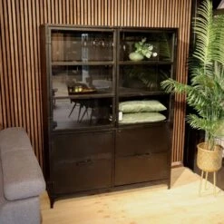 Romy Vitrinekast Industrieel Zwart – 35x120x200 Cm